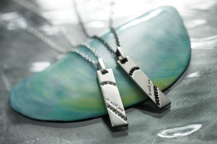 メンズは使いやすいプレートタイプ。レディースはシンプルかつキュートなハートのデザイン。